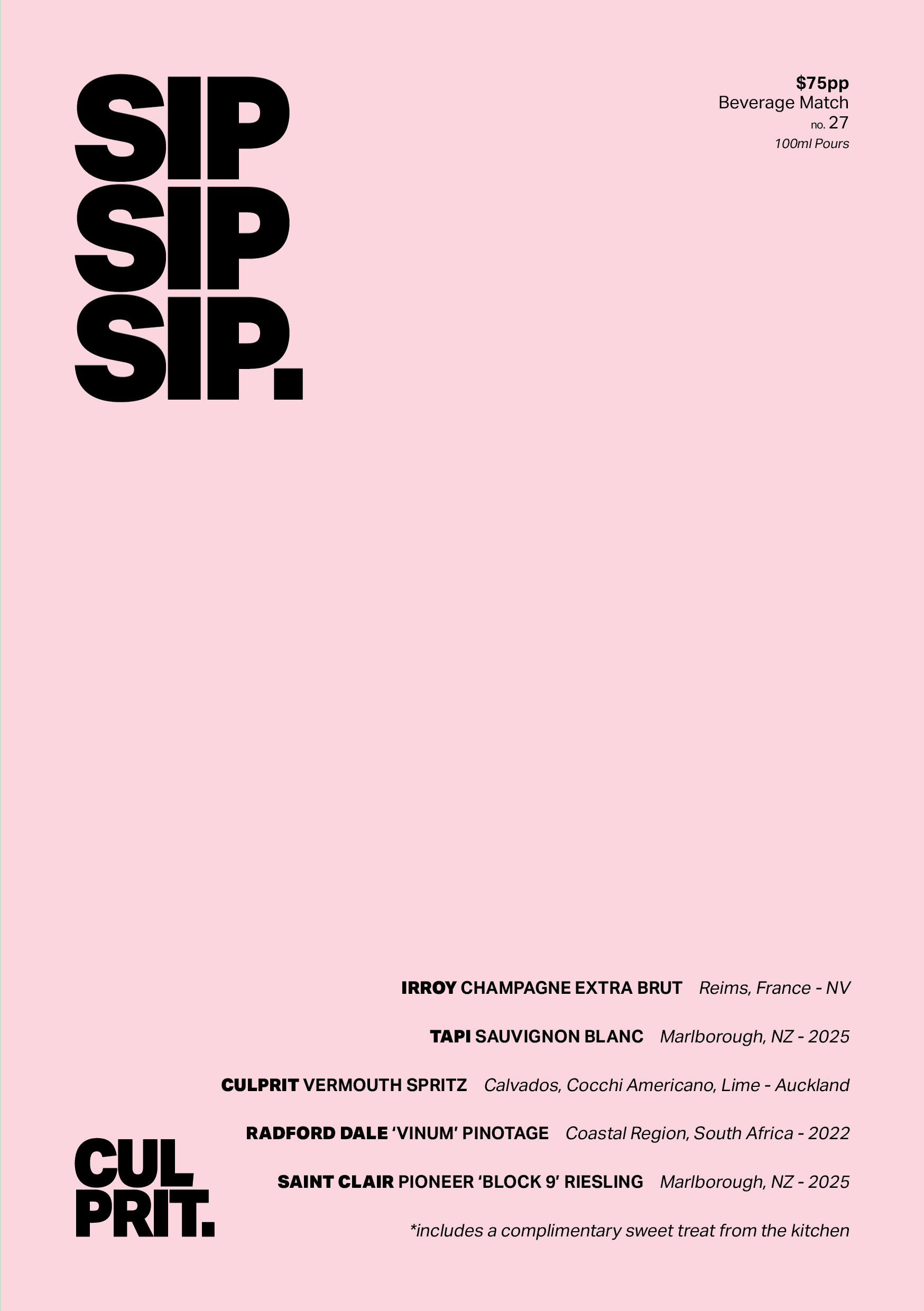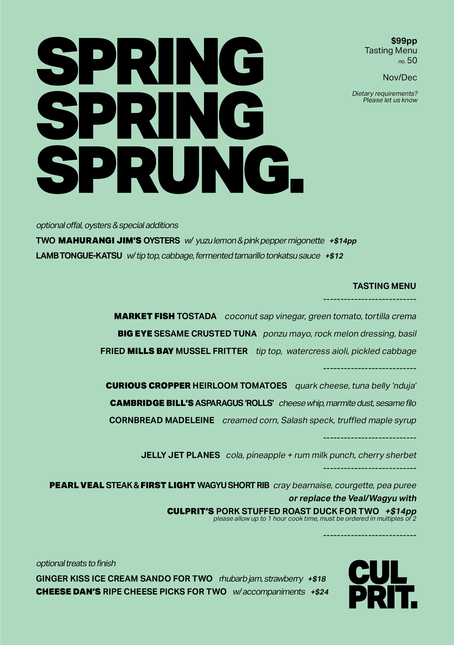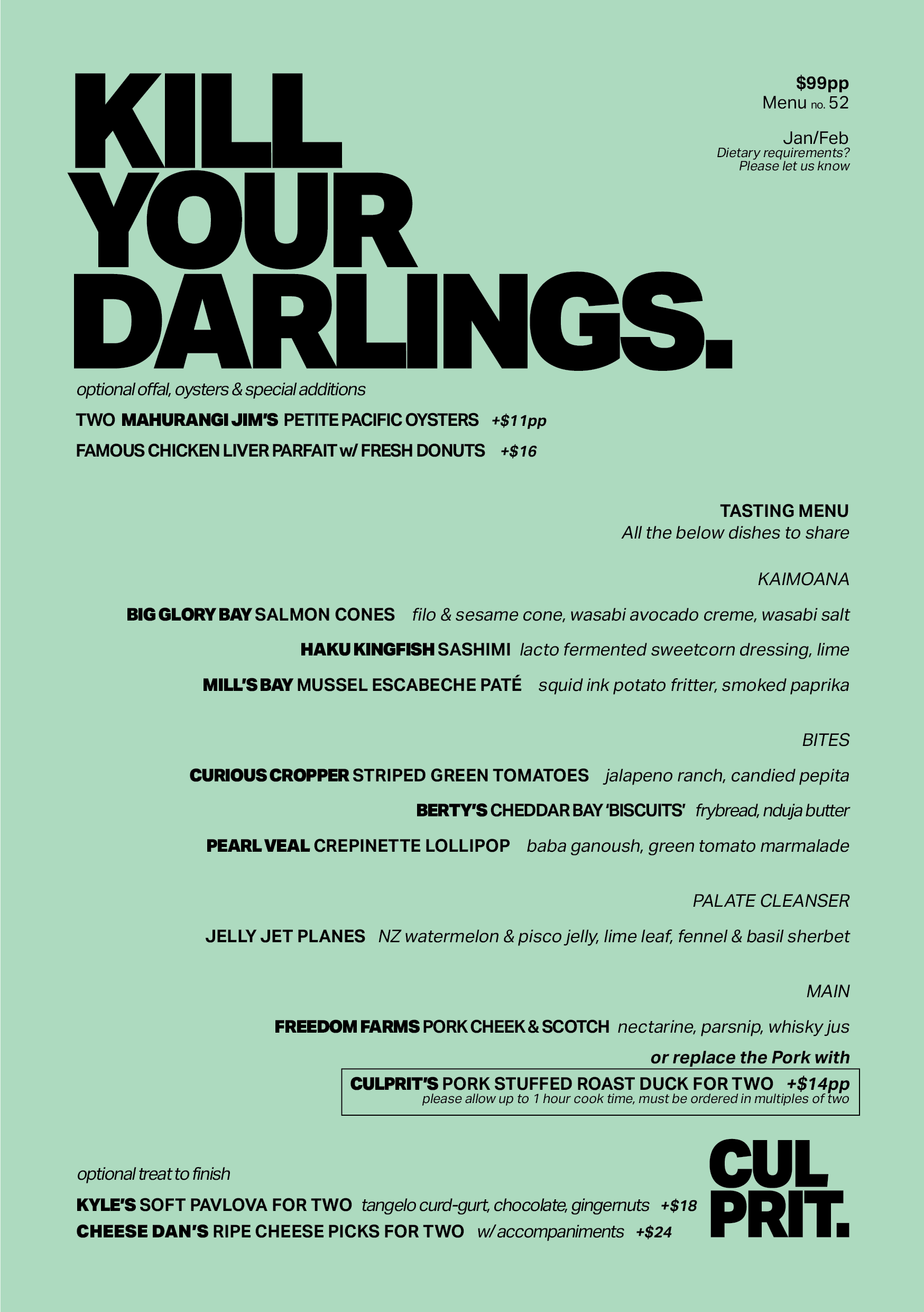 Culprit offers chef choice menus only, this allows us to capture the season or a theme, and also continue to run a small kitchen team.